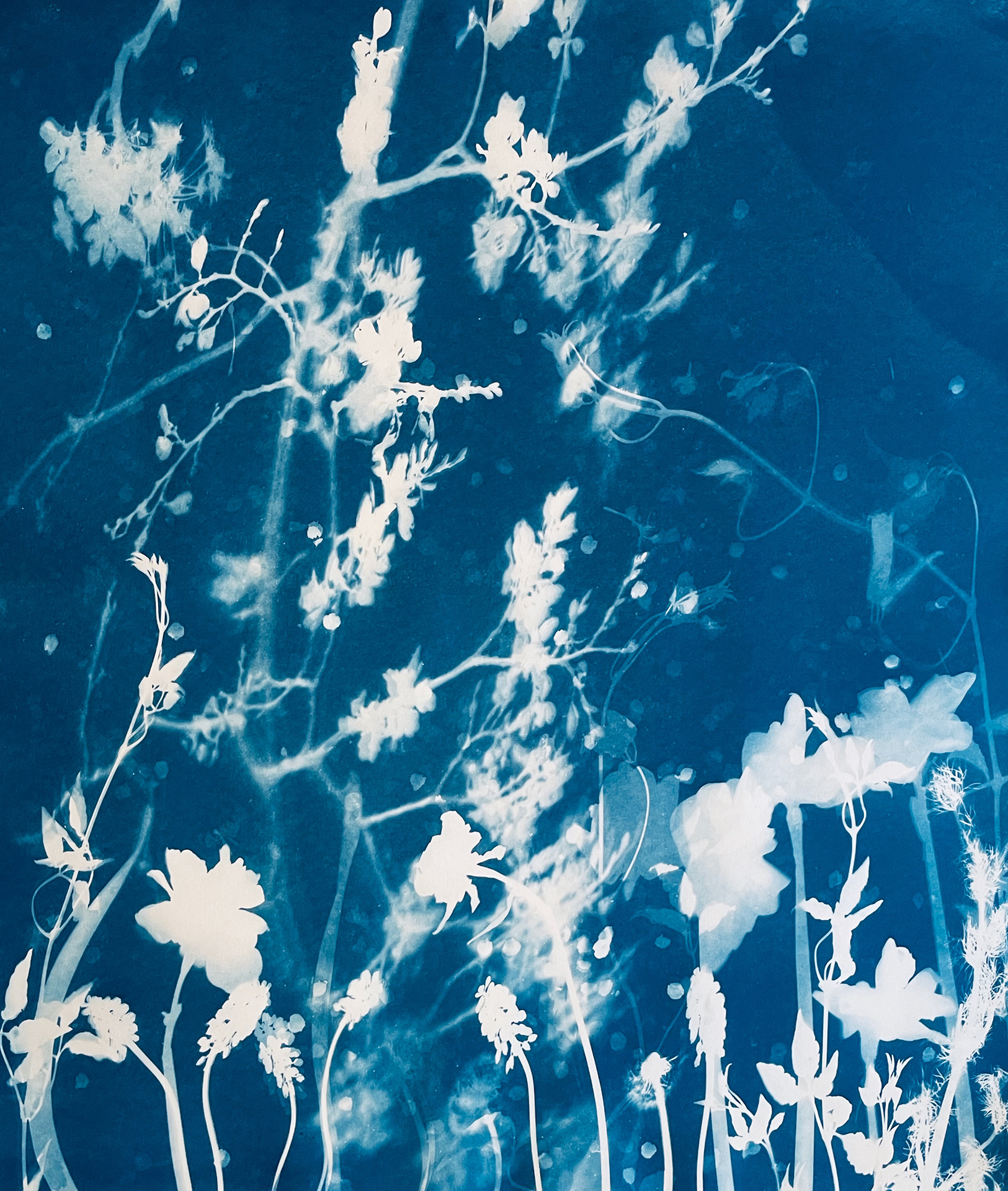 This collection of cyanotype images made in Kentucky reflects the seasons, the experience I find the most profound here. Spring is a symphony of blooms represented in Vernal Pool I & II. Cyanotypes toned in hot tea, Summer Solstice I & II are a pulse of heat and maturing seeds. But the most beautiful of all is the frozen groundwater hanging from the 400 million-year-old limestone ledges in the crisp blue winter air, Icicles. We are the metamorphosis counting off time with the seasons. Cyanotypes are my record.